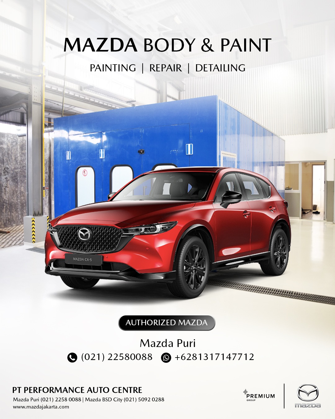 Mazda Puri dan Mazda BSD City memberikan kemudahan dan kenyamanan kepada konsumen untuk melakukan Body & Paint Repair melalui layanan online dan Whatsapp. Body & Paint Repair merupakan layanan pendaftaran online untuk perbaikan body dan cat kendaraan Mazda yang anda miliki. Silahkan tentukan tanggal dan Jam berapa kendaraan anda akan datang untuk dilakukan perbaikan body dan cat mobil Mazda Anda.