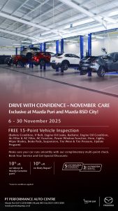 Warga Jakarta dan sekitarnya, saatnya memanjakan mobil Mazda kesayangan Anda! PT Performance Auto Centre menghadirkan program spesial “November Care” eksklusif di Mazda Puri dan Mazda BSD City dari tanggal 6 hingga 30 November 2025.